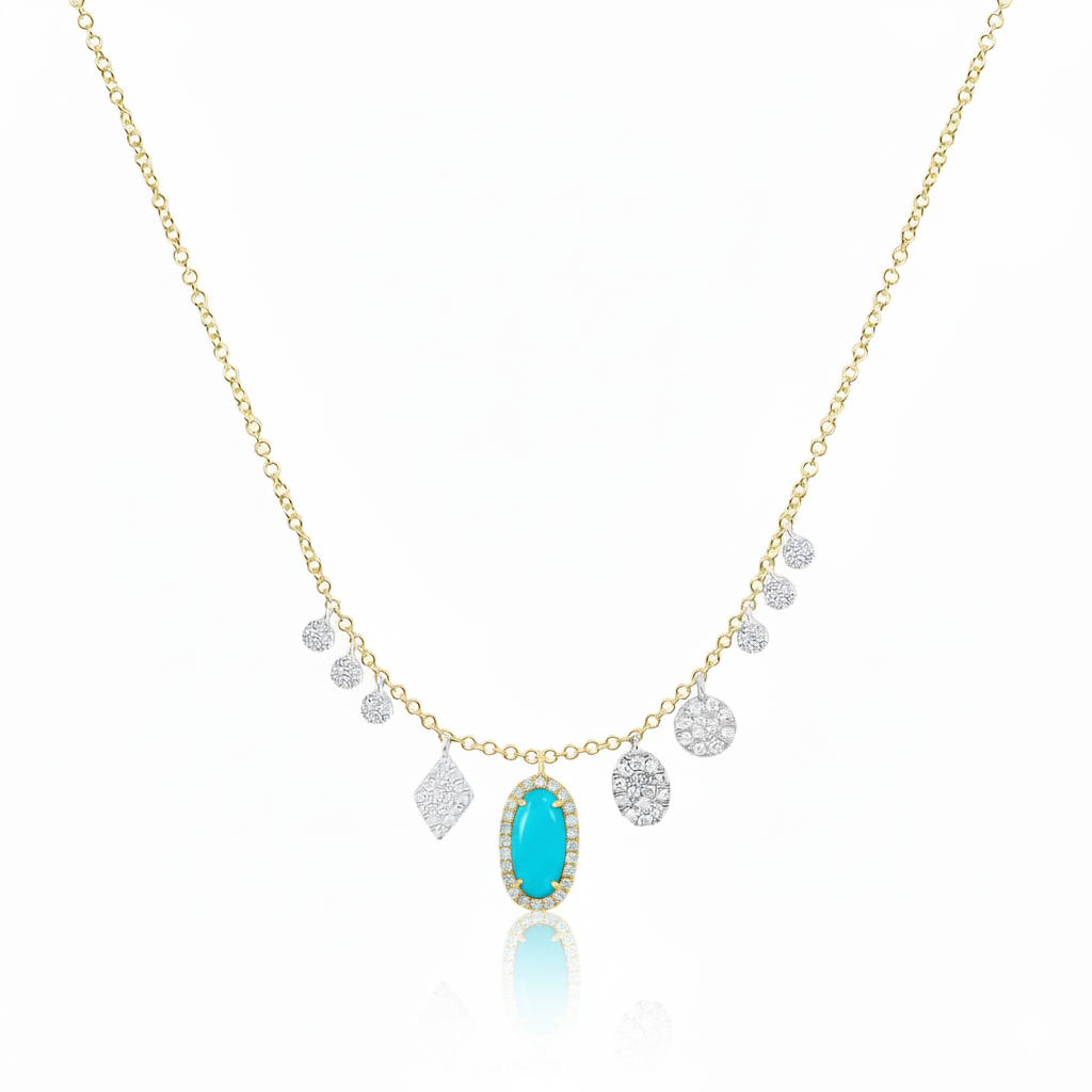 14kt Yellow Gold Diamond and Turquoise Necklace