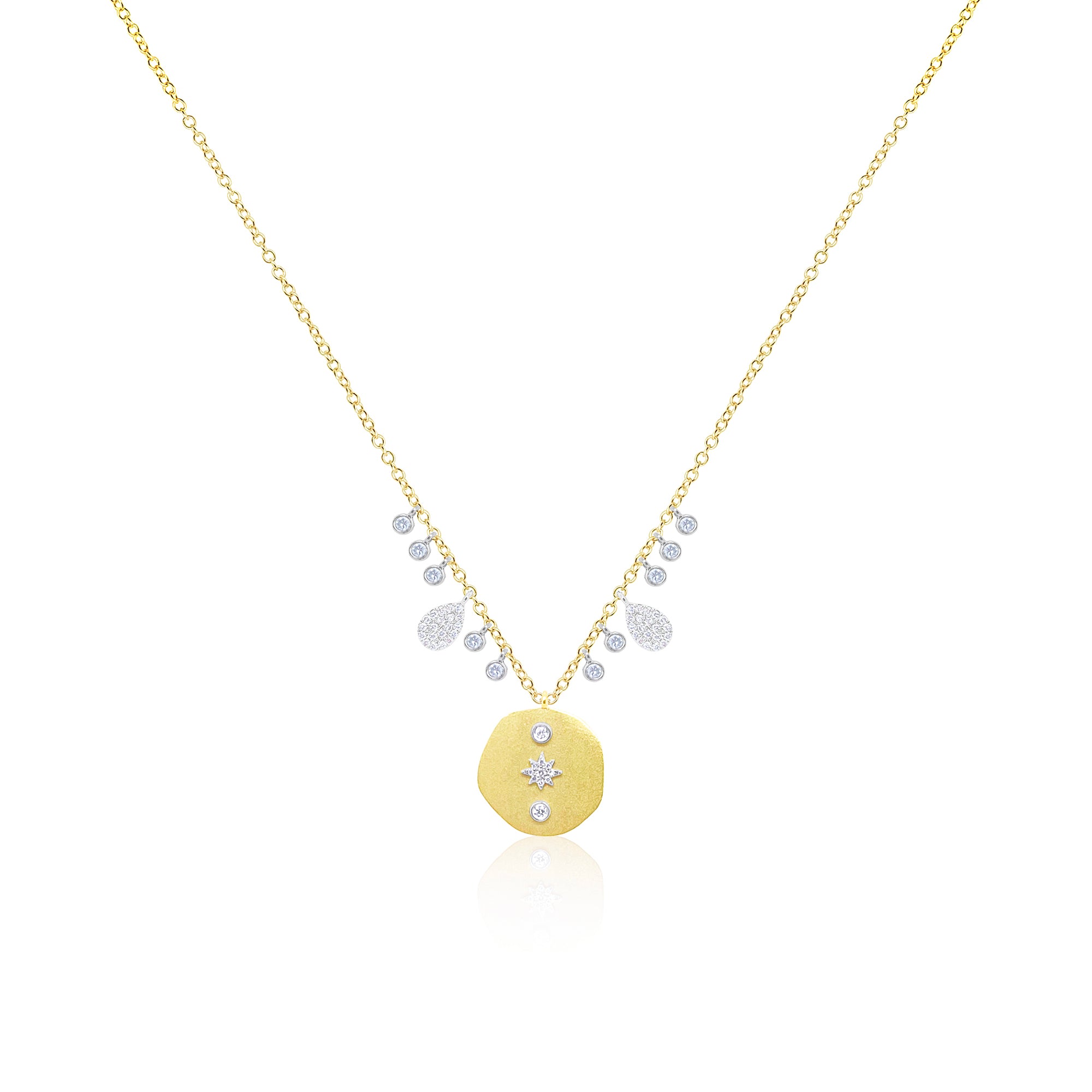 14kt Yellow Gold Disc Necklace Celestial Theme Diamond Charms