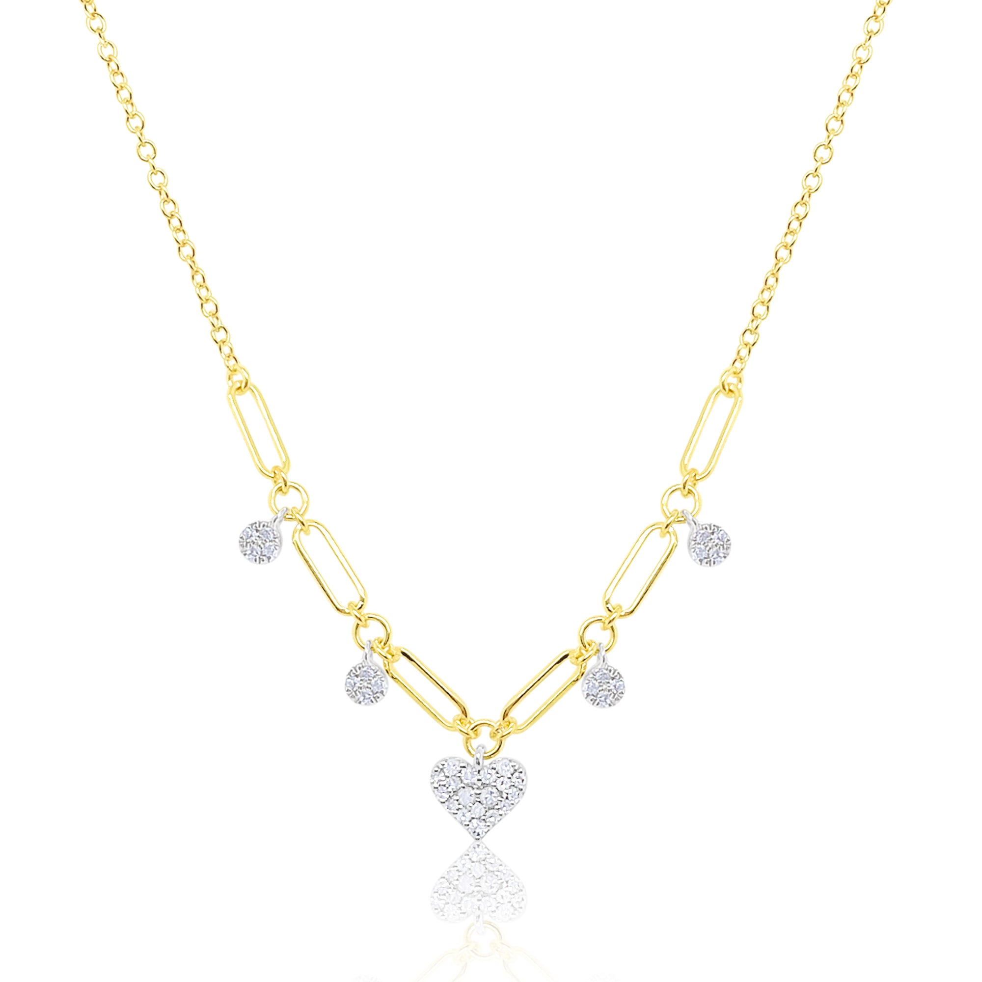 14kt Yellow Gold Diamond Heart Pendant Link Necklace