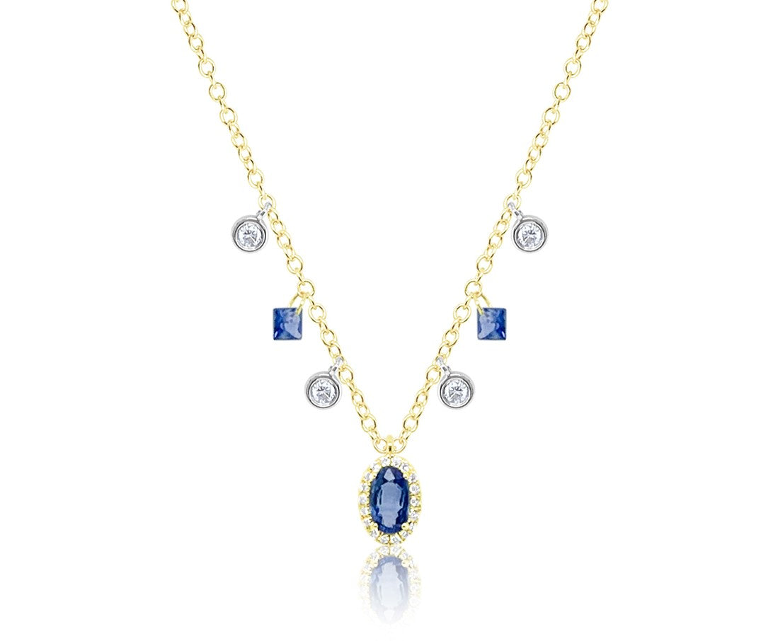 14kt Yellow Gold Sapphire and Diamond Drop Necklace
