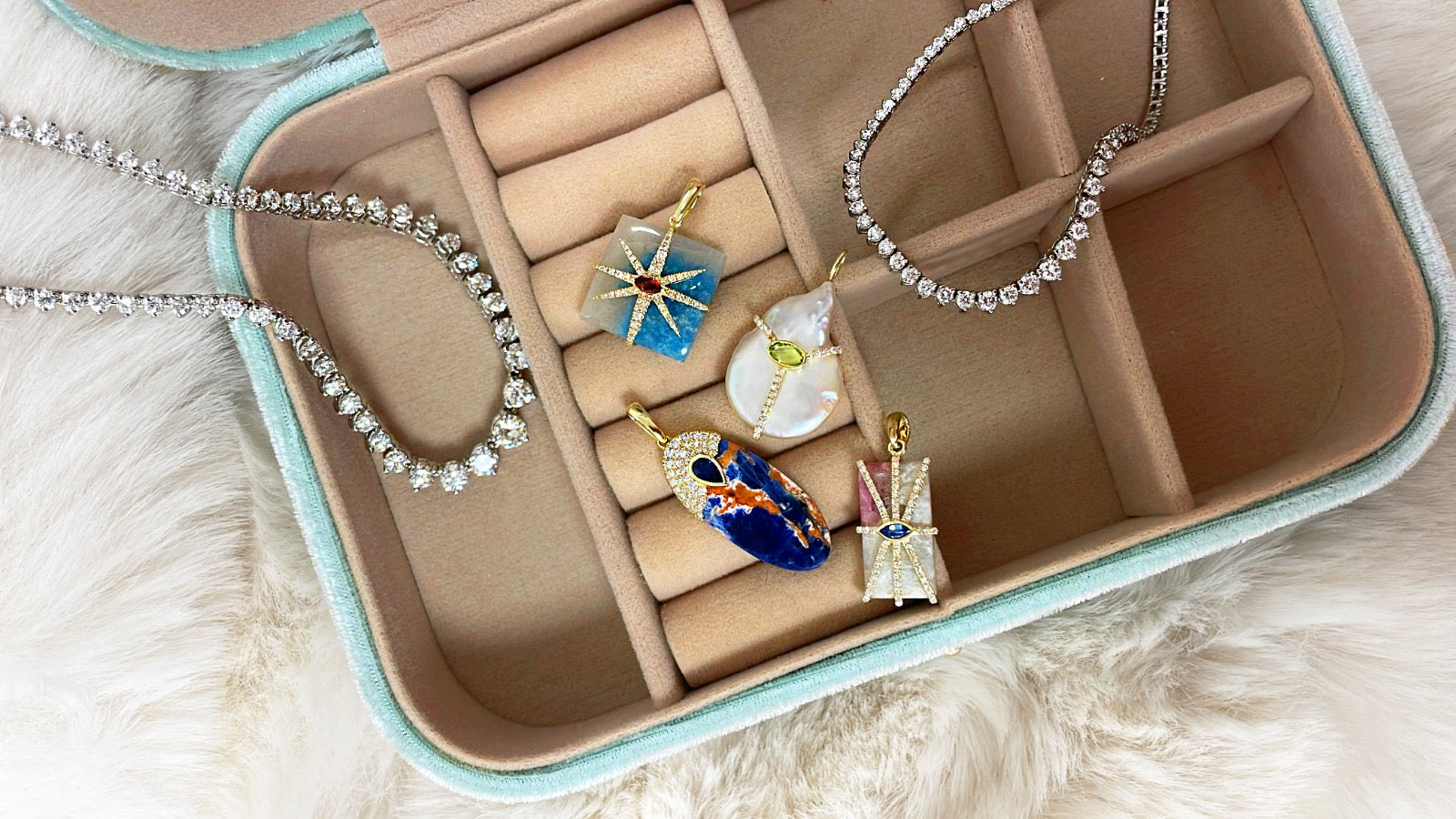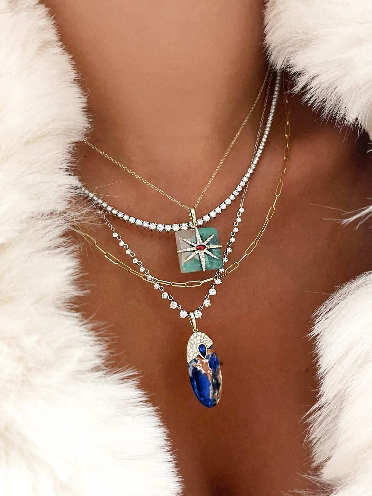 Bold yet elegant, this charm brings luminous color and celestial glamour to any necklace stack.