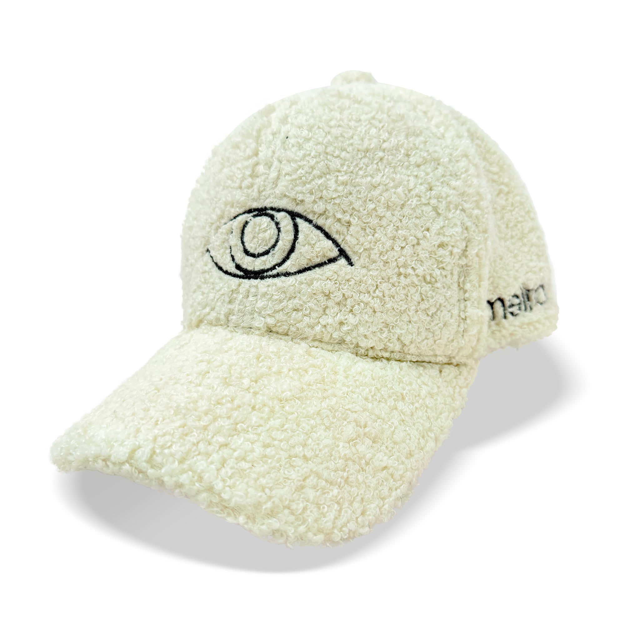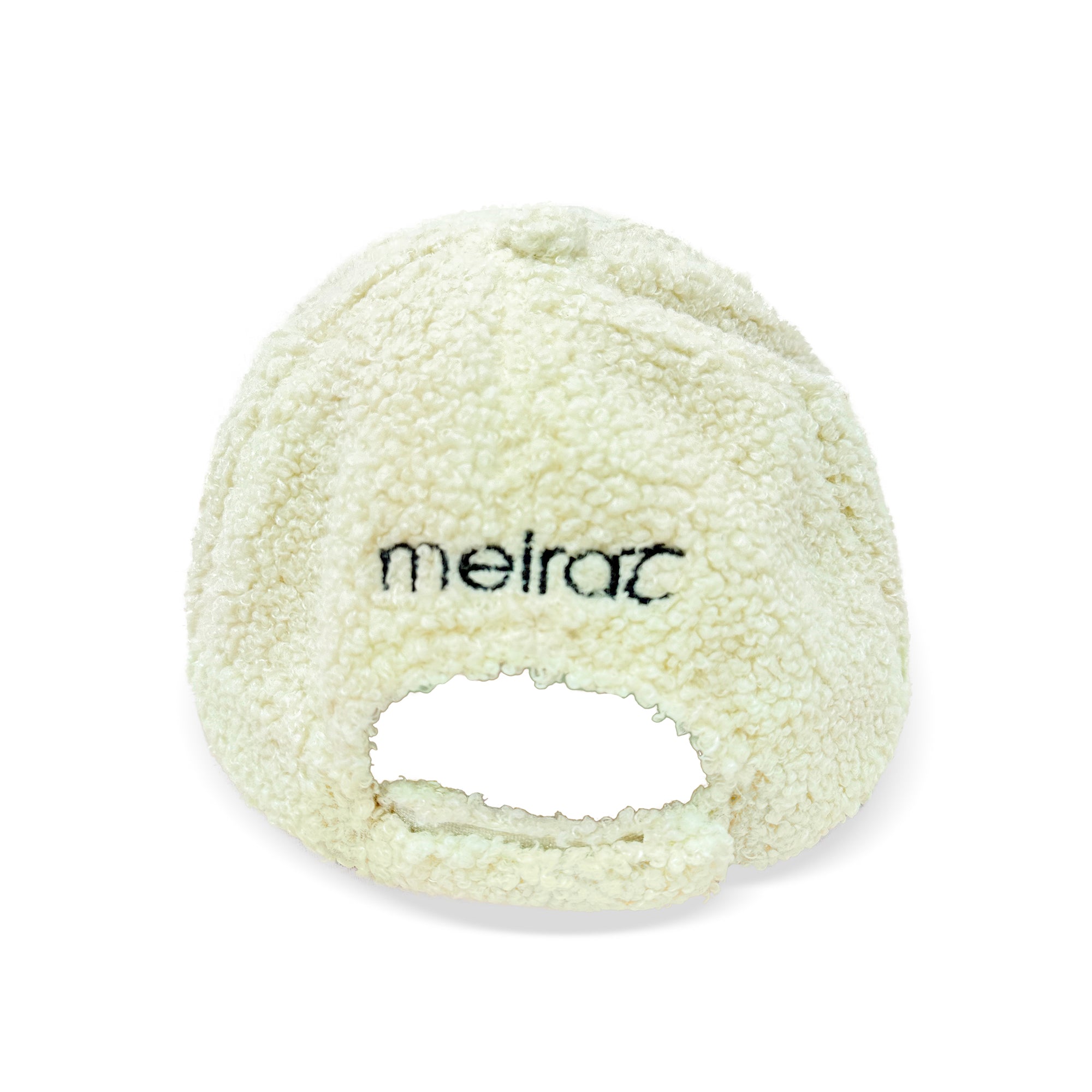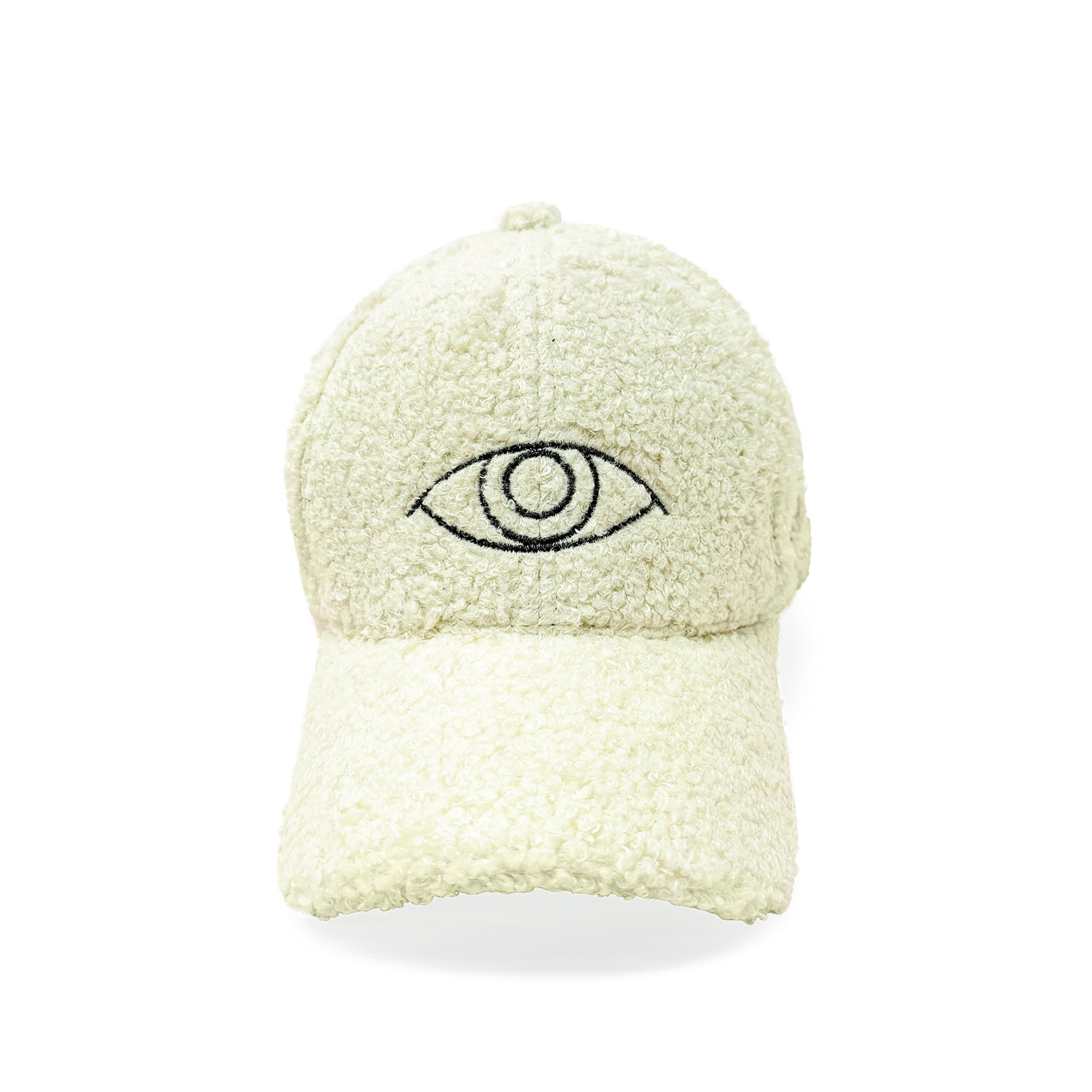 The front features Meira T’s signature eye symbol, a modern twist on a classic motif, embroidered in sleek black thread for contrast. The side is finished with the Meira T logo, understated yet bold. A Velcro closure at the back ensures a perfect fit, making it easy to adjust on the go.