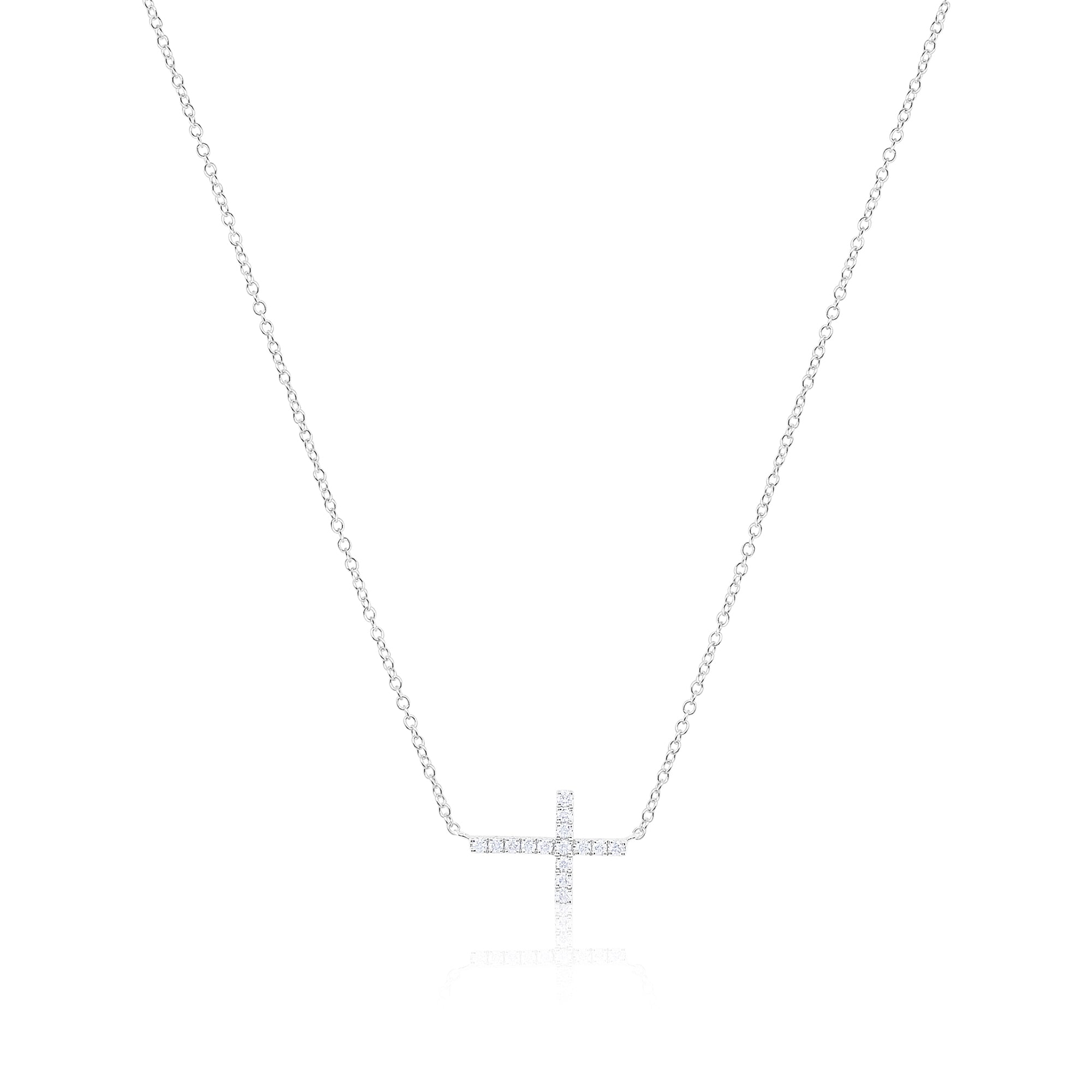 Elevate your everyday elegance with this refined white gold cross necklace. Crafted with timeless sophistication, the delicate cross pendant catches light beautifully while maintaining an understated charm. Perfect for layering or wearing solo, this versatile piece transitions seamlessly from casual to formal occasions. A meaningful accessory that combines spiritual significance with contemporary style, ideal for those who appreciate classic jewelry with enduring appeal.