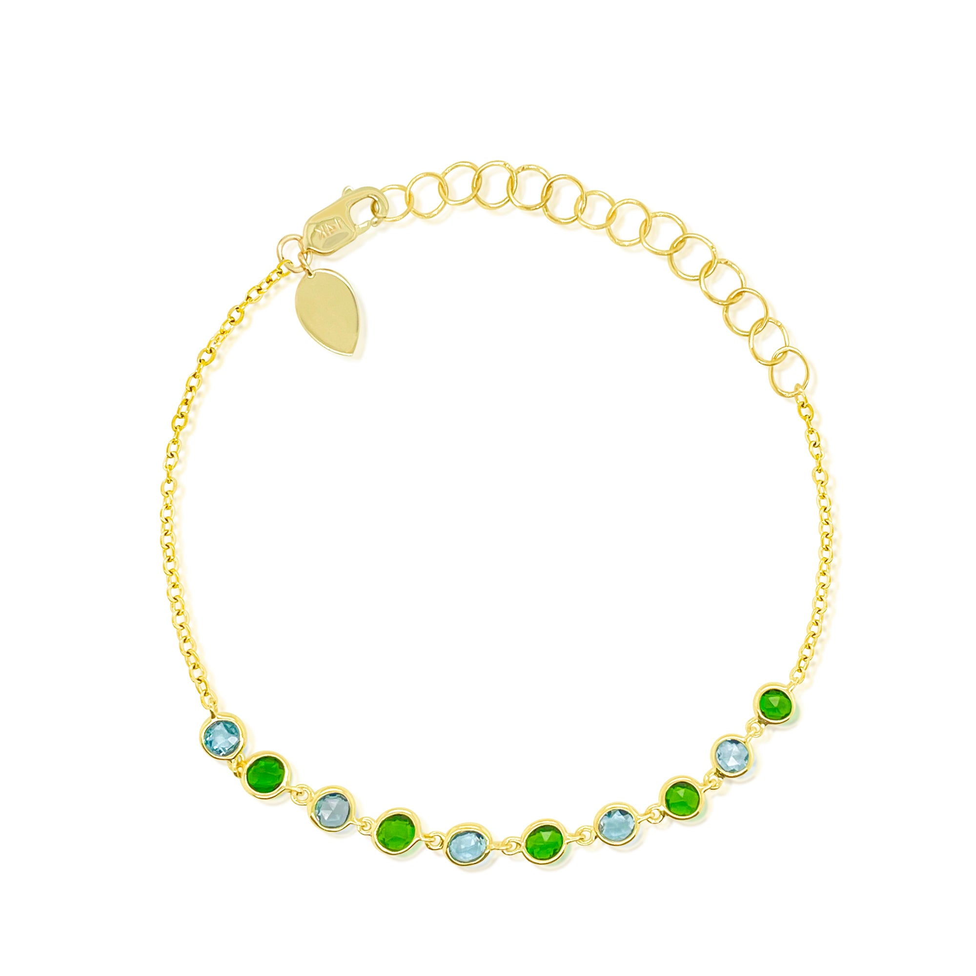 Yellow Gold Blue Topaz and Green Chrome Bracelet