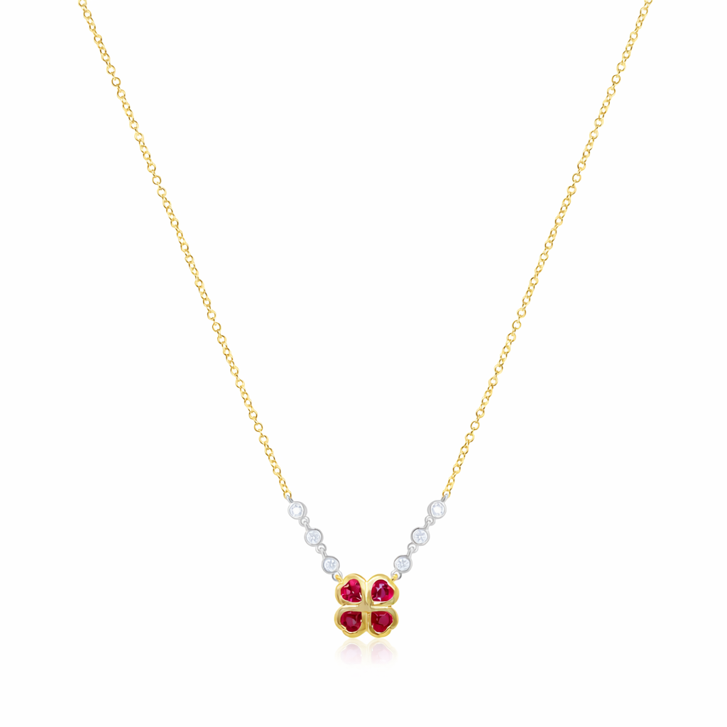 Yellow Gold Ruby Clover Necklace with Diamonds