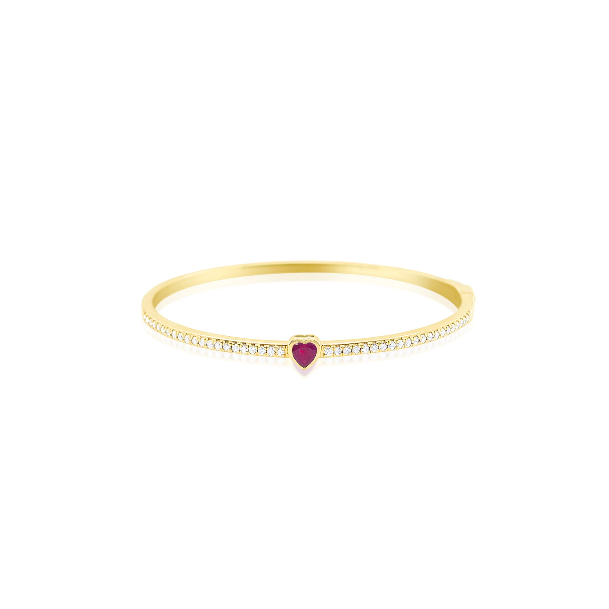 Radiant ruby hearts adorned in lustrous yellow gold create an enchanting bangle collection that celebrates timeless elegance. Each piece features meticulously crafted heart motifs that catch the light beautifully, making a refined statement on the wrist. Perfect for layering or wearing solo, these bangles blend romantic symbolism with sophisticated design. Ideal for special occasions or everyday luxury, they bring warmth and grace to any ensemble.