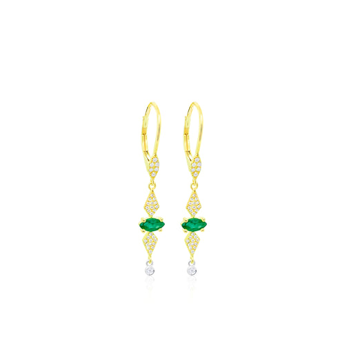 14kt Yellow Gold Diamond Marquis Shape Emerald Dangle Gemstone Earrings