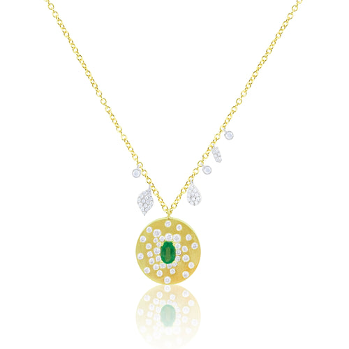 Meira T 14kt Yellow Gold Diamond Medallion Necklace with Oval Emerlad Center