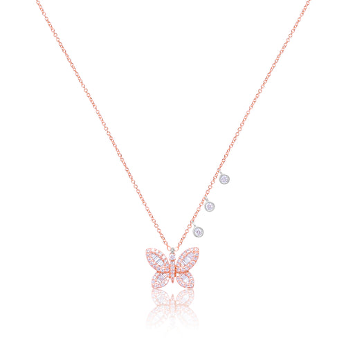 14kt Rose Gold Diamond Butterfly Necklace with Diamond Bezels