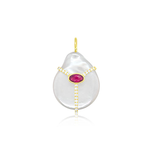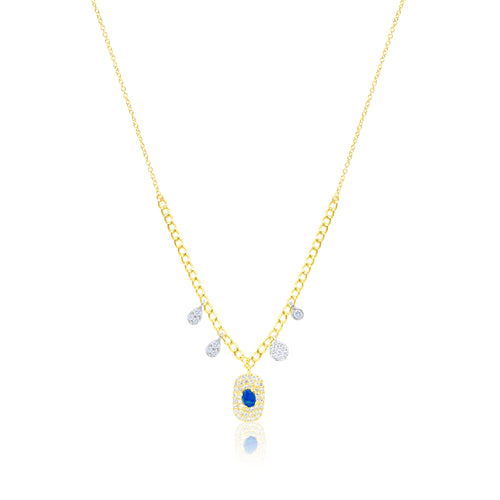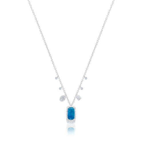 Two Tone Gold Blue Topaz Diamond Charm Necklace