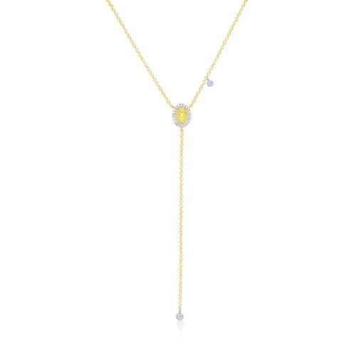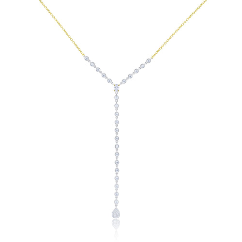 Two Tone Gold Diamond Bezel Lariat Necklace