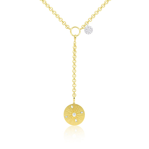 14kt Yellow Gold Diamond Celestial Coin Necklace with Ball Chain