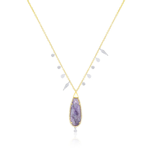 14kt Yellow Gold Silver Center Purple Jasper Diamond Necklace