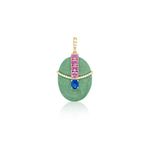 Yellow Gold Chrysoprase Diamond Sapphire Charm