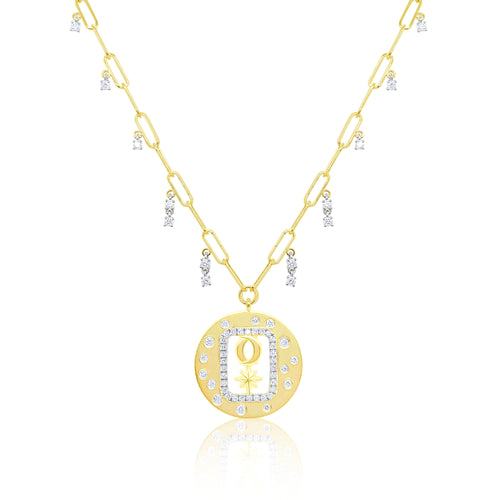 14kt Yellow Gold Paperclip Diamond Celestial Necklace