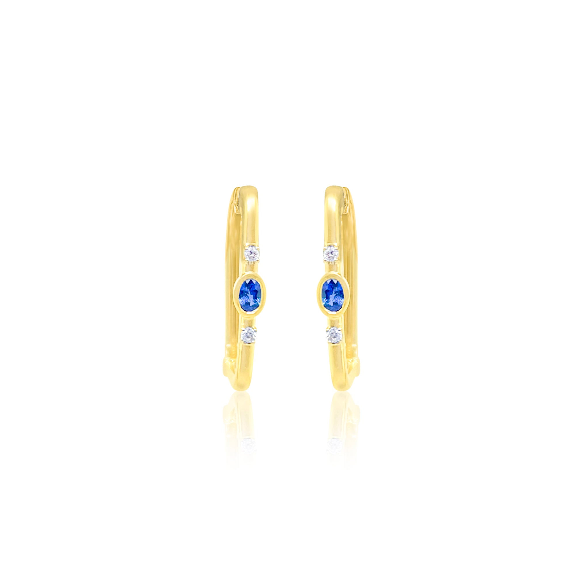 Elevate your elegance with these 14kt gold rectangle hoops, exquisitely adorned with deep blue sapphires and sparkling diamonds. Their refined geometric design adds a modern yet timeless touch, perfect for sophisticated occasions or timeless everyday luxury. Crafted with precision, these earrings promise lasting brilliance and understated glamour.