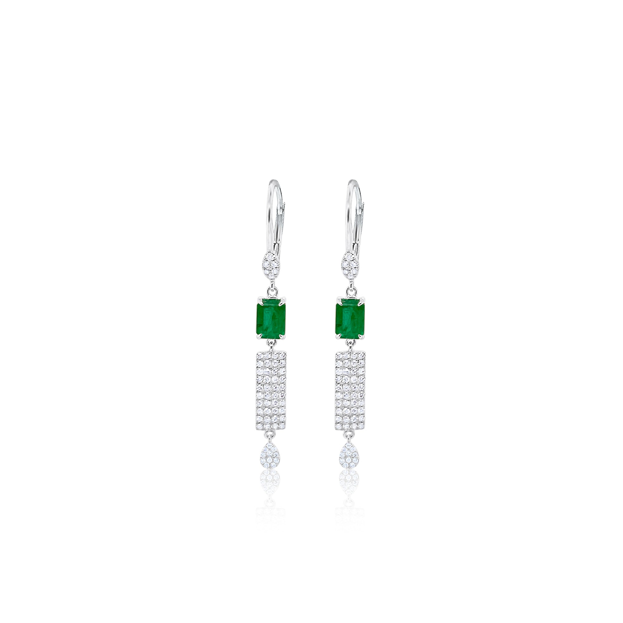 These emerald and diamond drop earrings offer a graceful blend of vibrant green hues and sparkling brilliance. Designed to gently sway, they bring a touch of refined sophistication to any ensemble, making them ideal for formal events or elevating your everyday style with subtle luxury. Crafted to highlight the rich color of emeralds alongside dazzling diamonds, these earrings are a timeless statement of elegance.