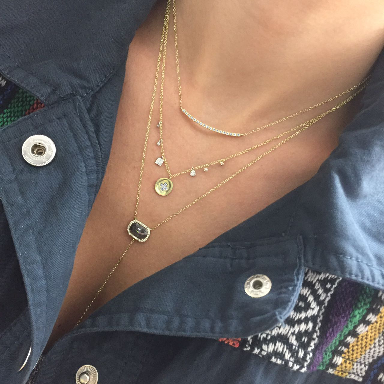 Layer up your everyday look with this simple and bright Meira T diamond encrusted bar necklace.