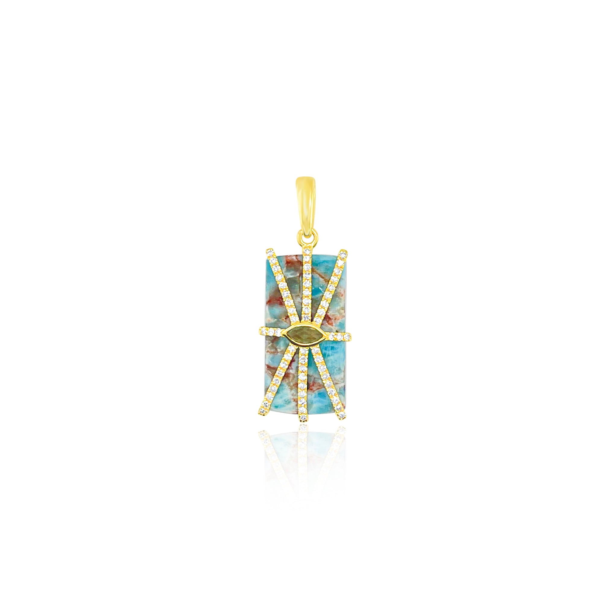 This exquisite charm combines the serene blue-green brilliance of apatite with warm, golden citrine stones, accented by sparkling diamonds in lustrous 14kt yellow gold. A refined addition to any charm bracelet, this piece captures timeless elegance with its sophisticated gemstone pairing. The precious metal setting ensures durability and lasting beauty, making it an ideal choice for collectors who appreciate fine jewelry craftsmanship and distinctive design.
