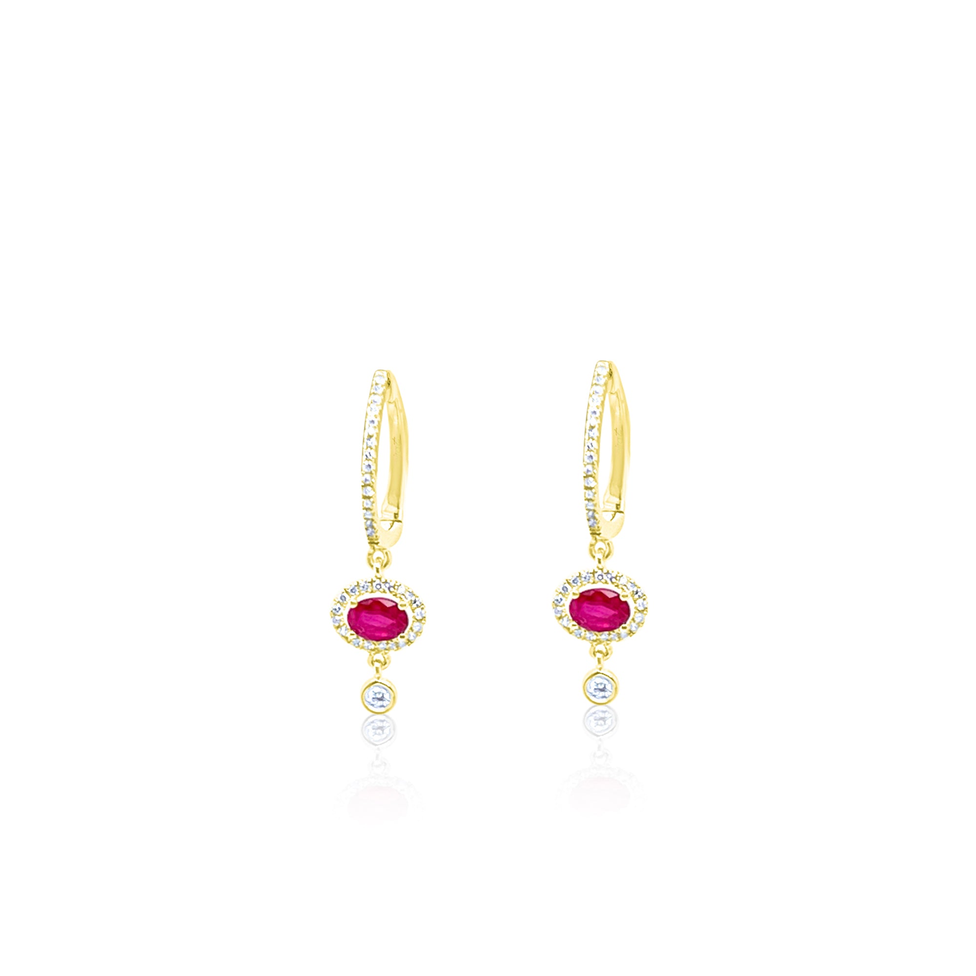14kt Yellow Gold Diamond and Ruby Drop Hoop Earrings