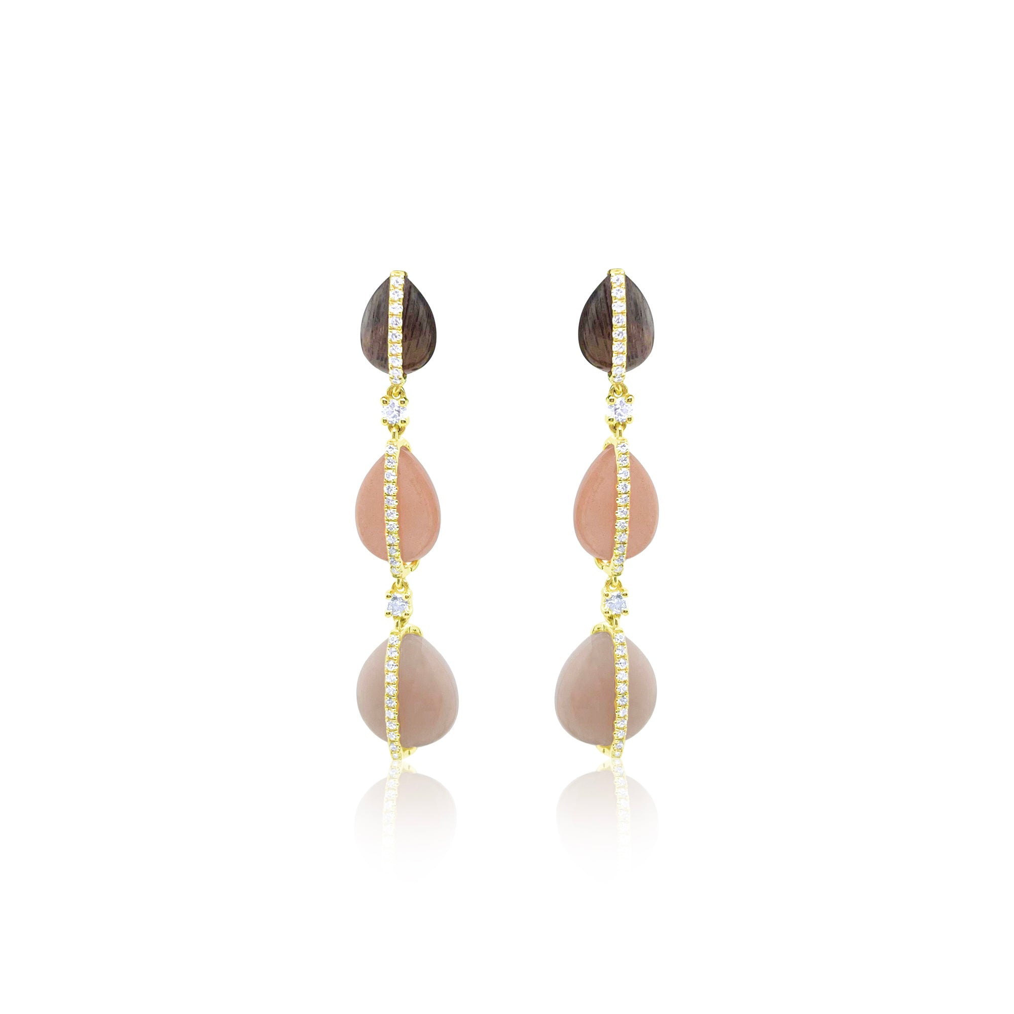 14kt Yellow Gold Pink Moonstone and Diamond Drop Earrings