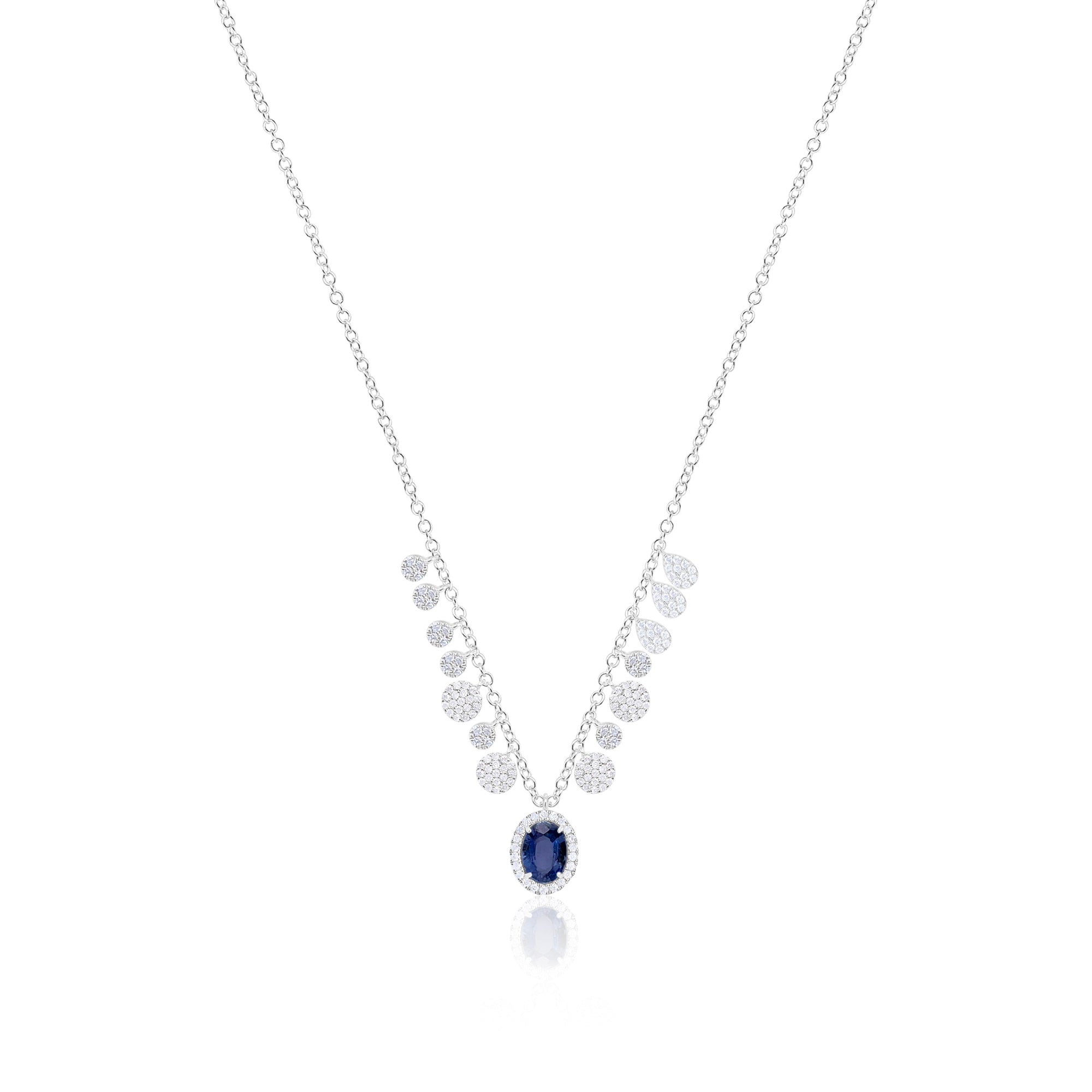 14kt White Gold Diamond and Sapphire Oval Pendant Necklace