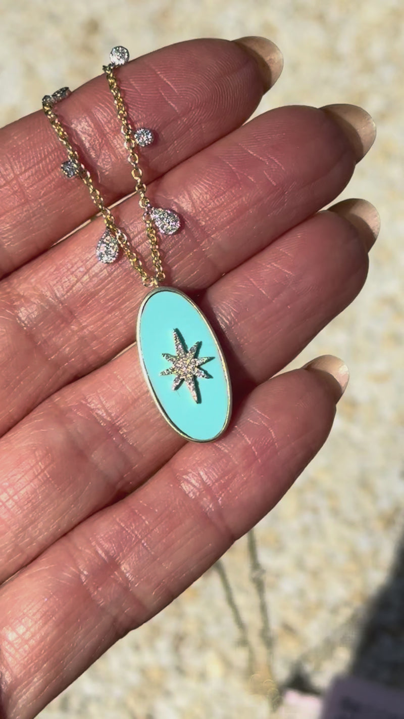 Yellow Gold Diamond and Turquoise Starburst Necklace