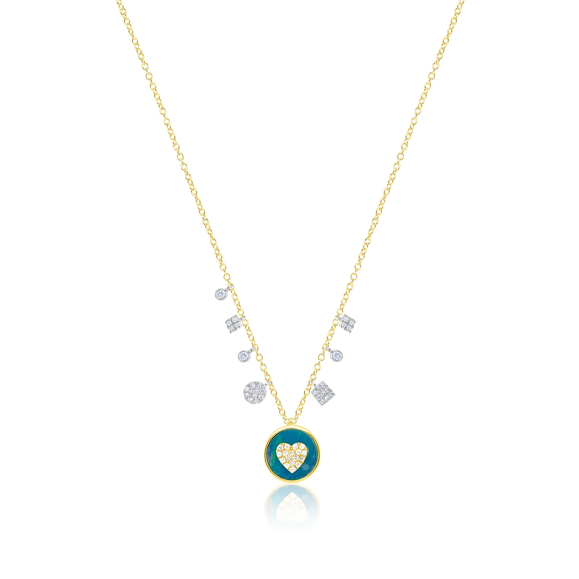 14kt Yellow Gold Blue Opal and Diamond Heart Pendant Necklace