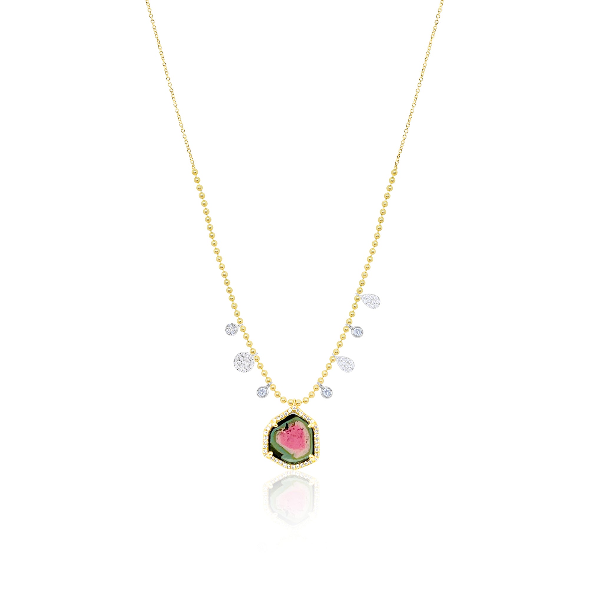 14kt Yellow Gold Watermelon Tourmaline and Diamond Pendant Necklace