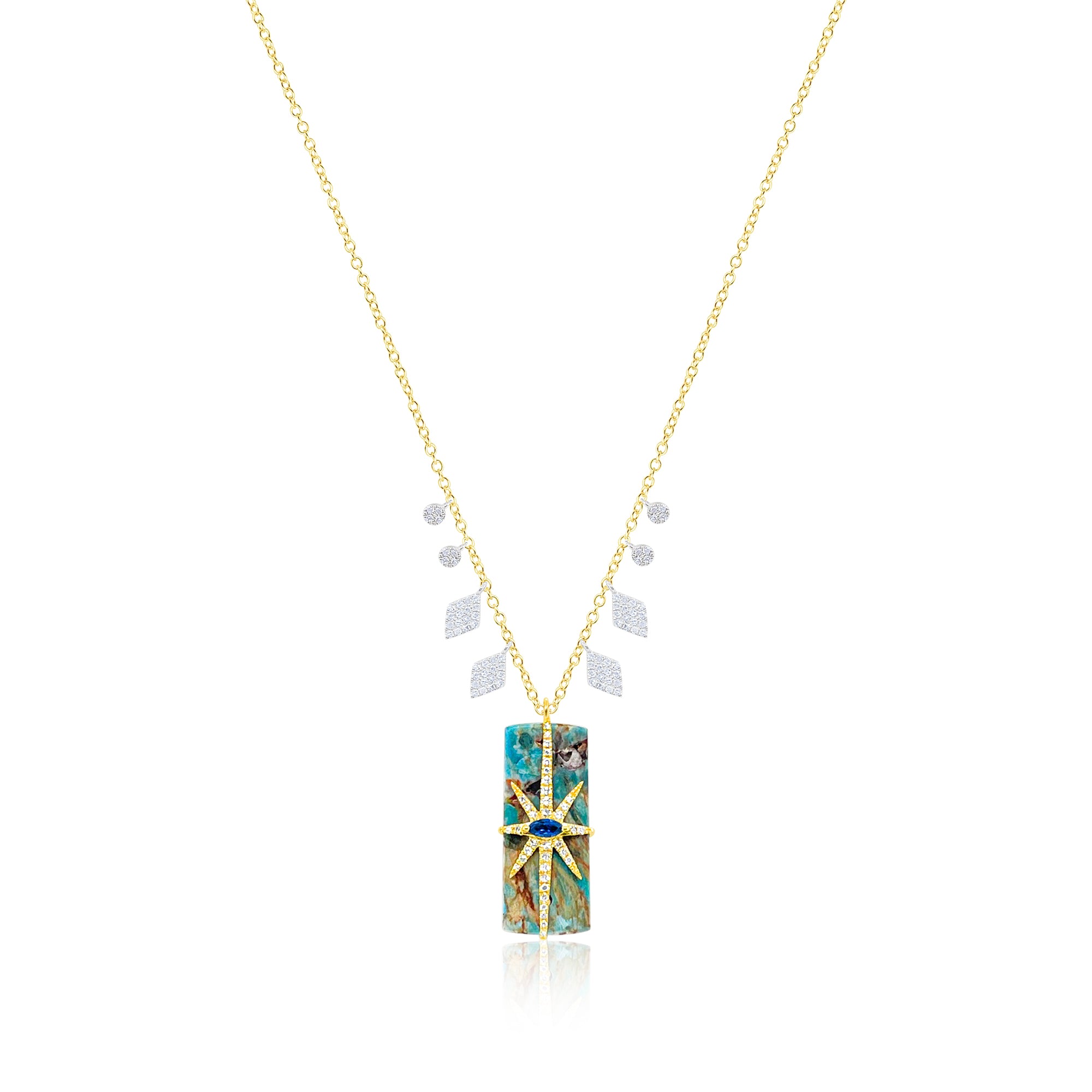 14kt Yellow Gold Blue Azurite and Diamond Celestial Necklace