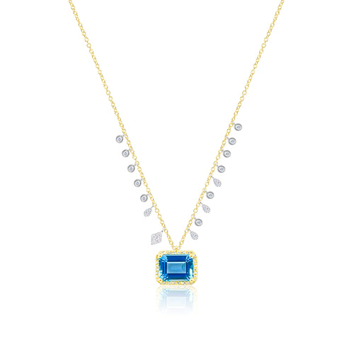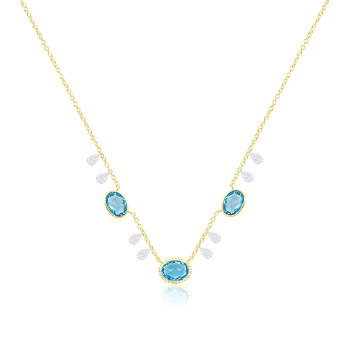 14kt Yellow Gold Blue Topaz Mutli Diamond Necklace