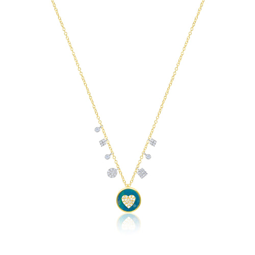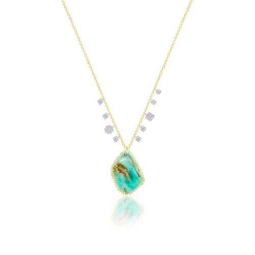 14kt Yellow Gold Diamond and Turquoise Stone Necklace