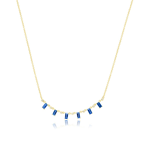 14kt Yellow Gold Blue Sapphire and Diamond Necklace