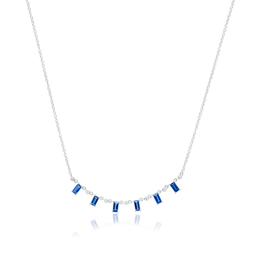 14kt White Gold Blue Sapphire and Diamond Necklace