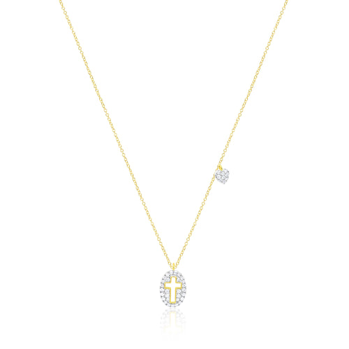 14kt Yellow Gold Cross Heart Diamond Necklace