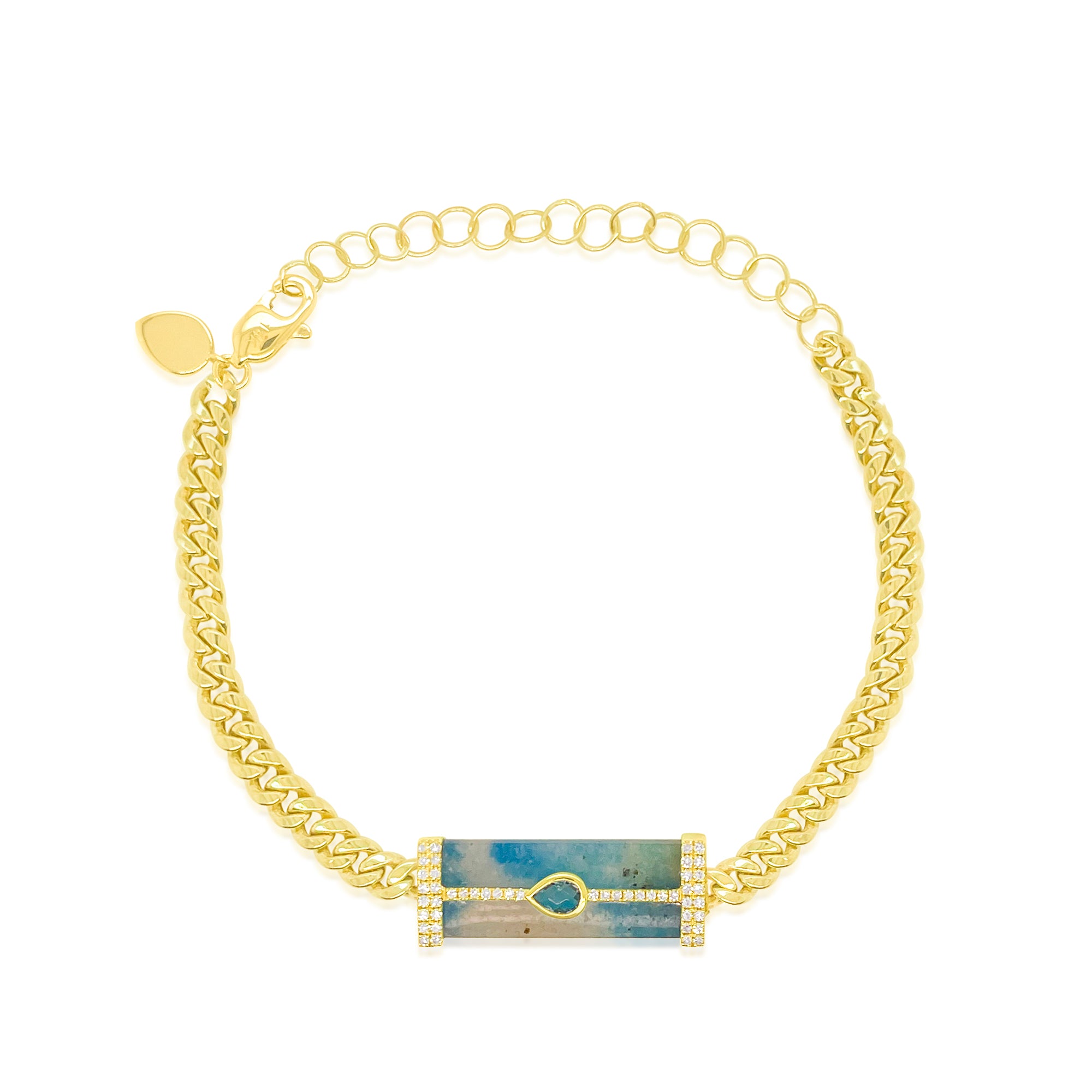 14kt Yellow Gold Azurite with Diamond and Blue Topaz Chain Bracelet