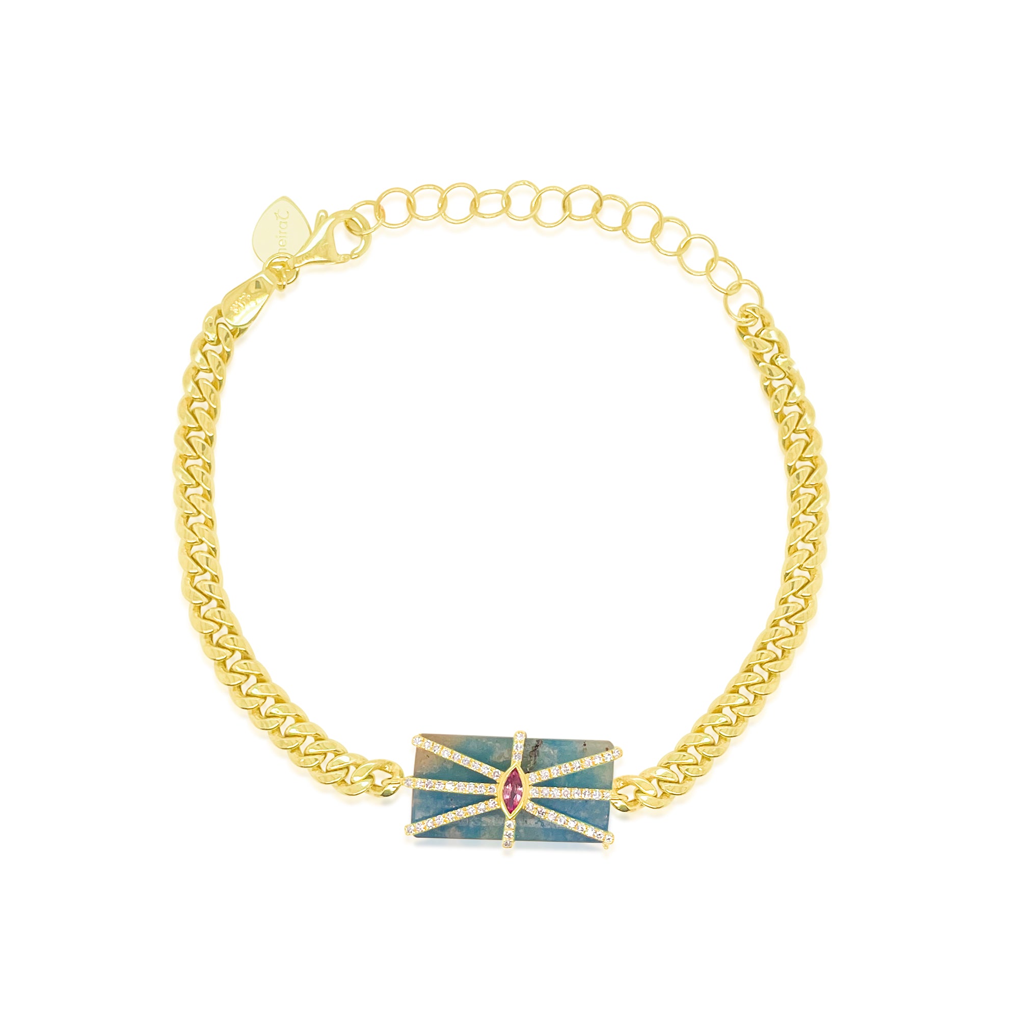 14kt Yellow Gold Azurite with Diamond and Pink Sapphire Charm Bracelet