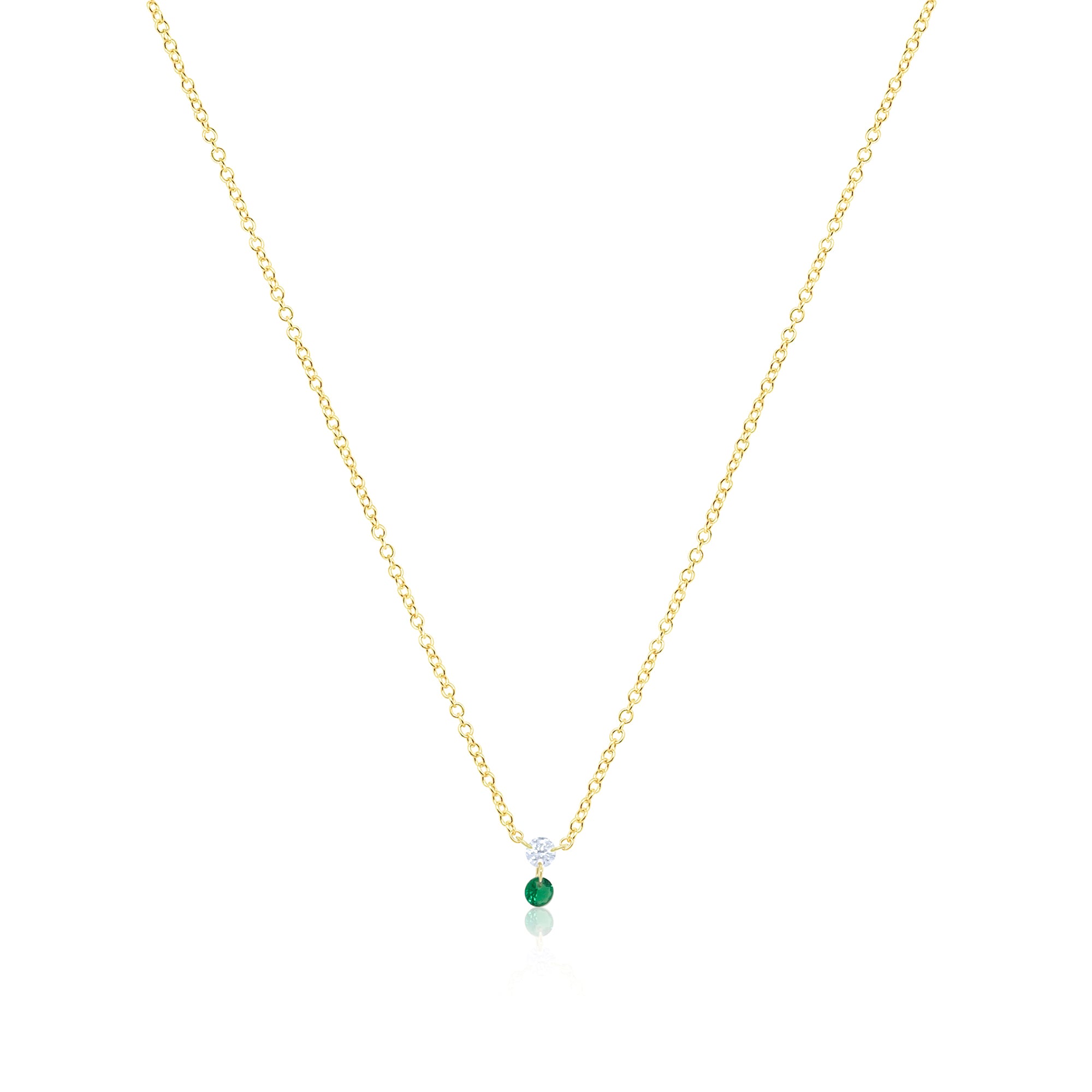 14kt Yellow Gold Diamond and Emerald Stone Necklace