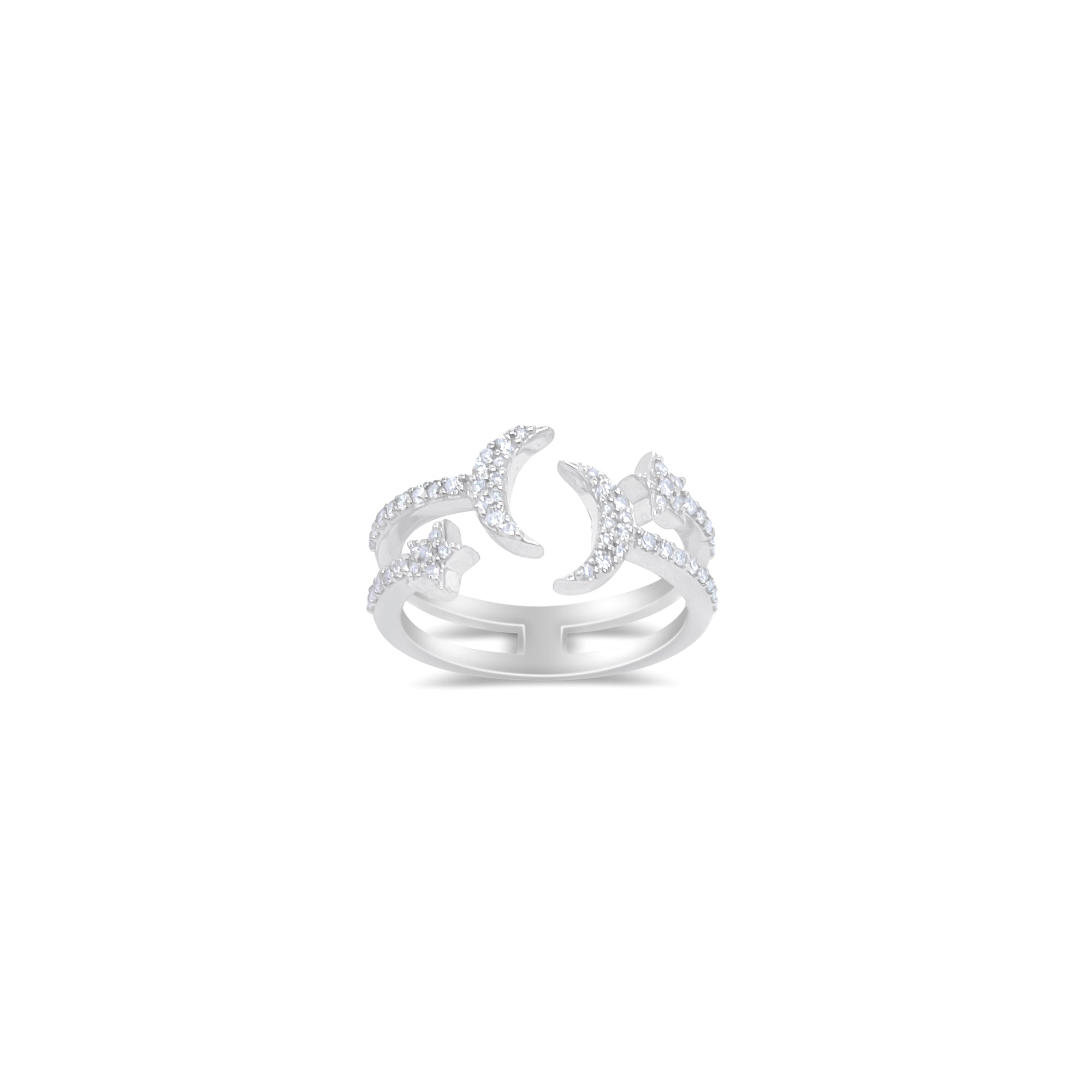 Crafted in 14k gold and diamonds, this ring features a double celestial lines.