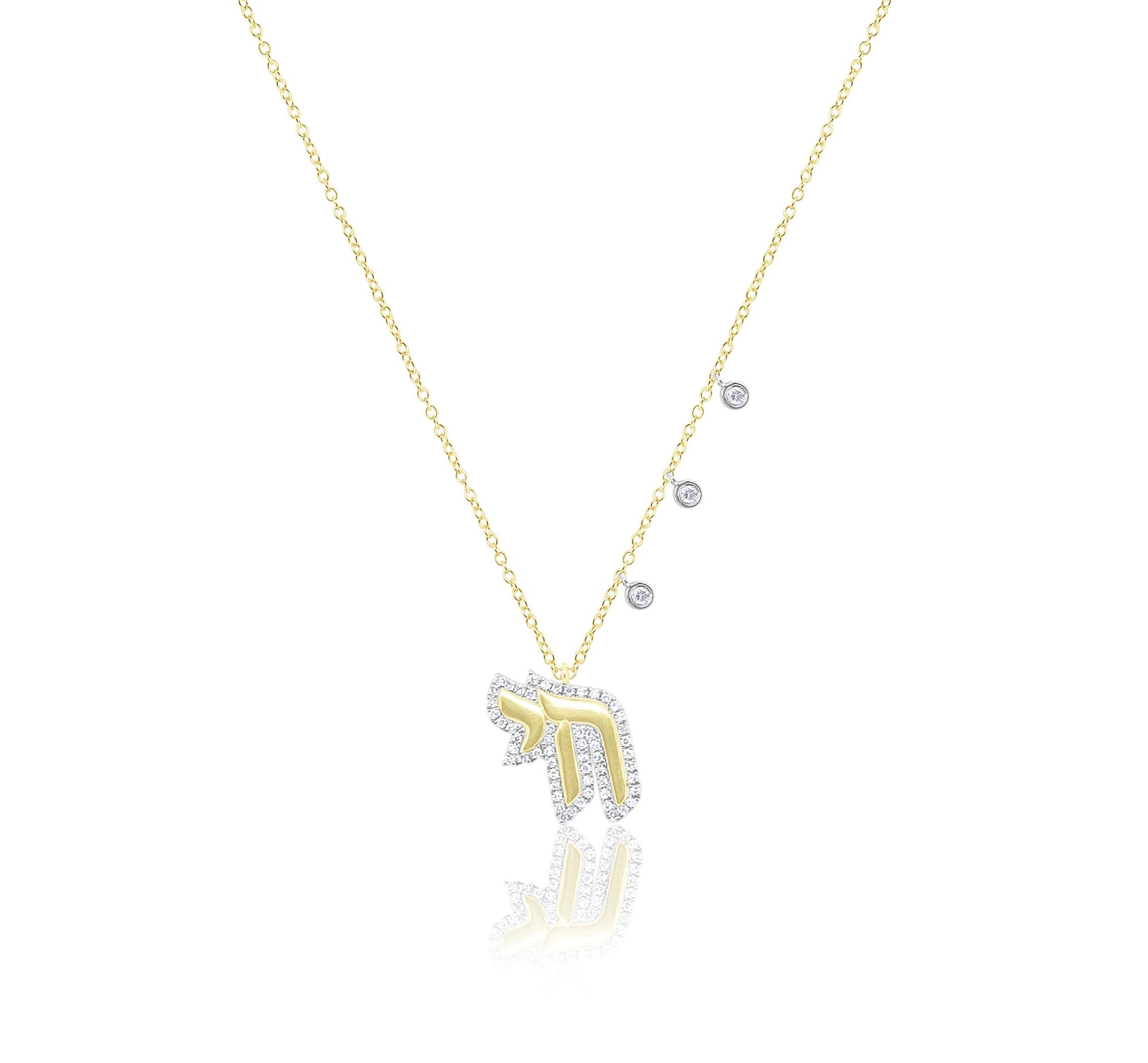 This exquisite 14kt yellow gold Chai necklace combines polished diamond accents with a brushed gold finish, creating a refined contrast that enhances its timeless elegance. Perfect for adding a subtle yet sophisticated touch to any outfit, this piece seamlessly blends tradition with modern luxury. Its delicate craftsmanship makes it an ideal expression of faith and style for everyday wear or special occasions.