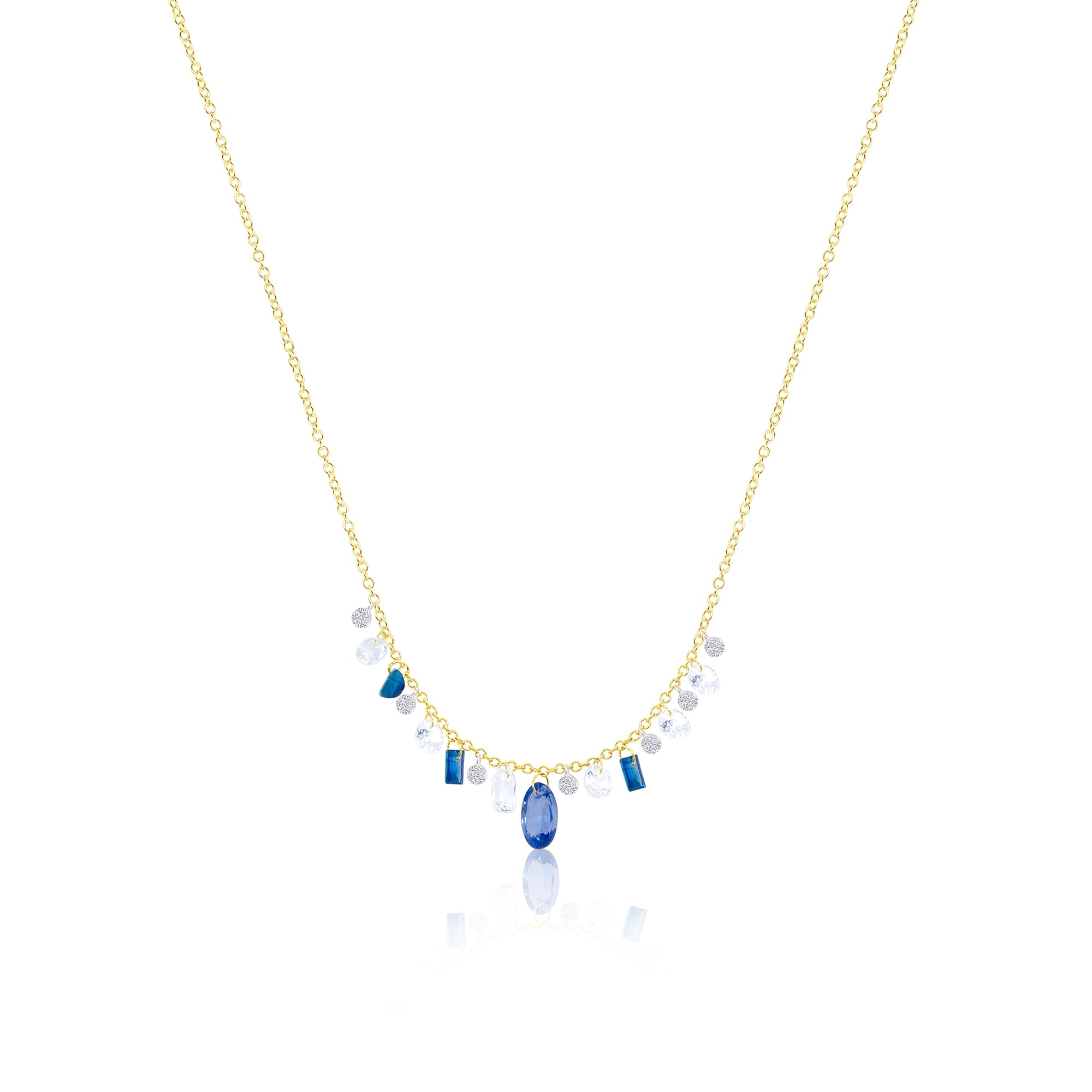 14kt Yellow Gold Diamond and Sapphire Drop Necklace