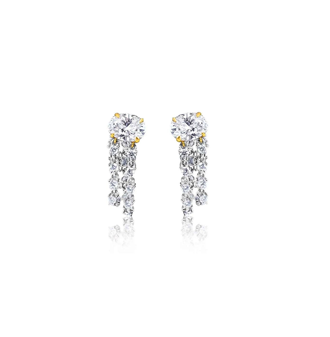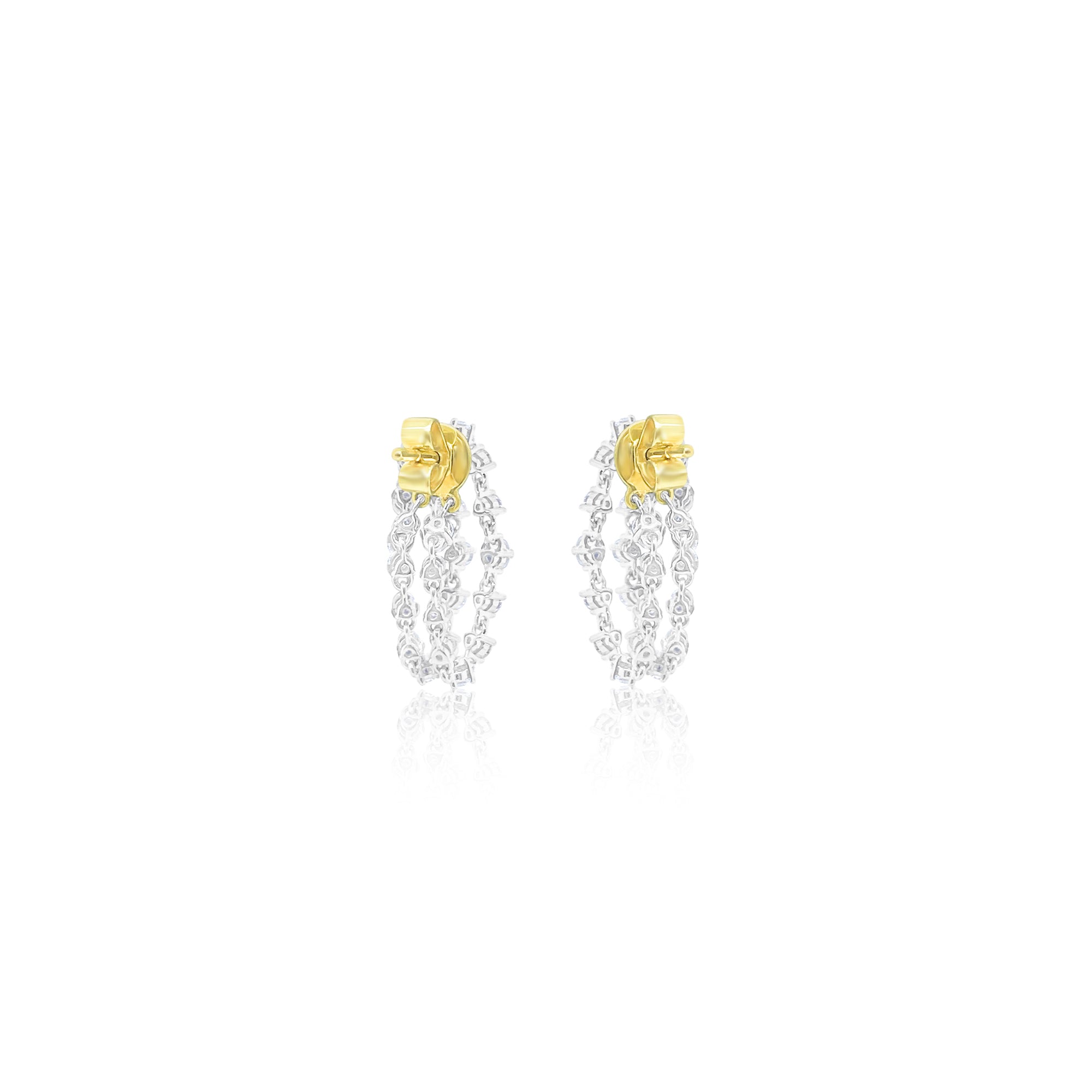 Delicately cascading below, shimmering chains are adorned with a total of 0.52 carats of natural diamonds, creating graceful movement and a radiant, multi-dimensional effect. The contrast of warm yellow gold and sleek white gold enhances the brilliance of each stone, adding depth and modern sophistication to the design.