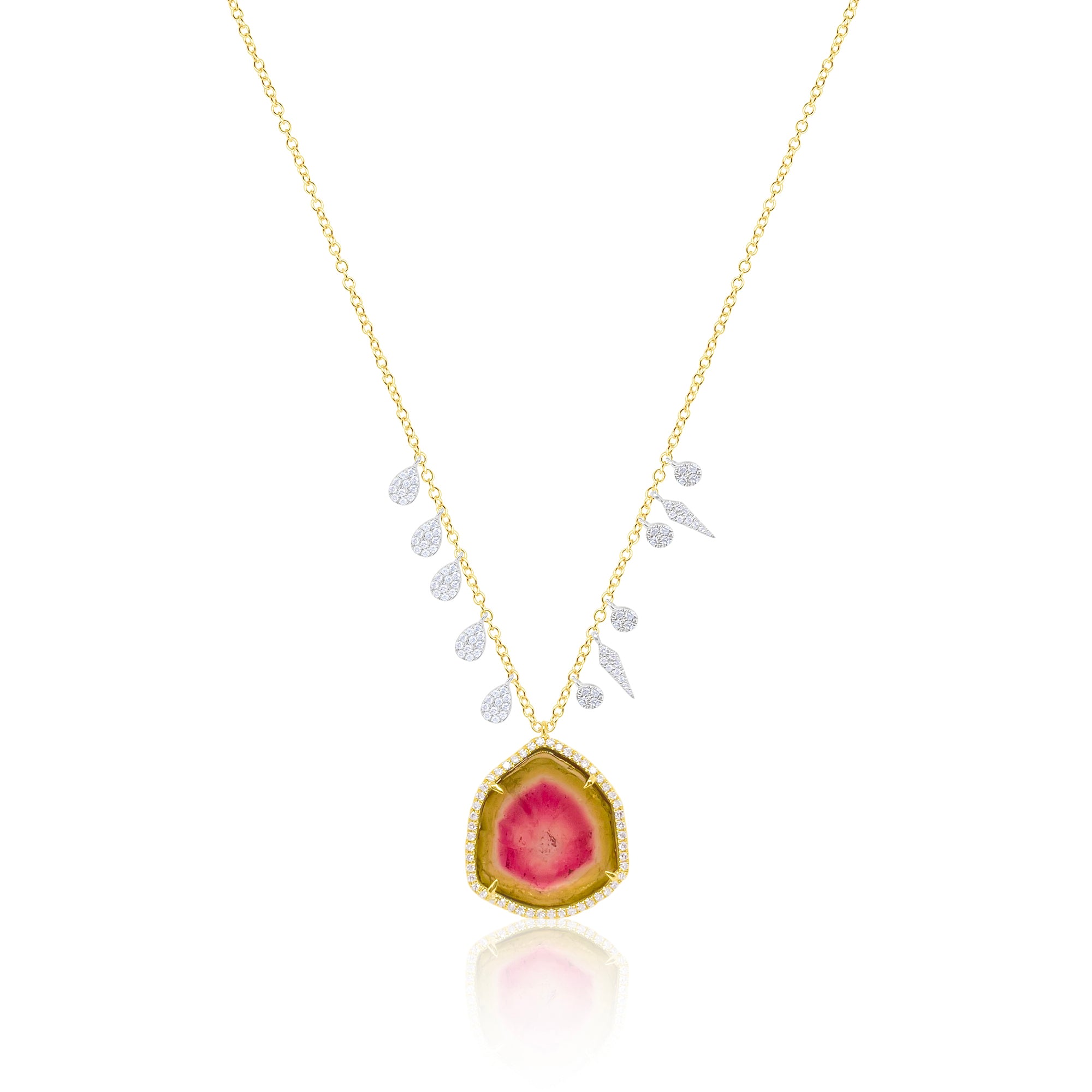 14kt Yellow Gold Watermelon Tourmaline Diamond Necklace