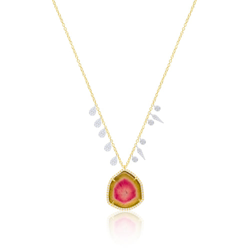 Yellow Gold Diamond and Watermelon Tourmaline Necklace