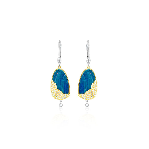 Yellow Gold Blue Opal Diamond Fan Necklace