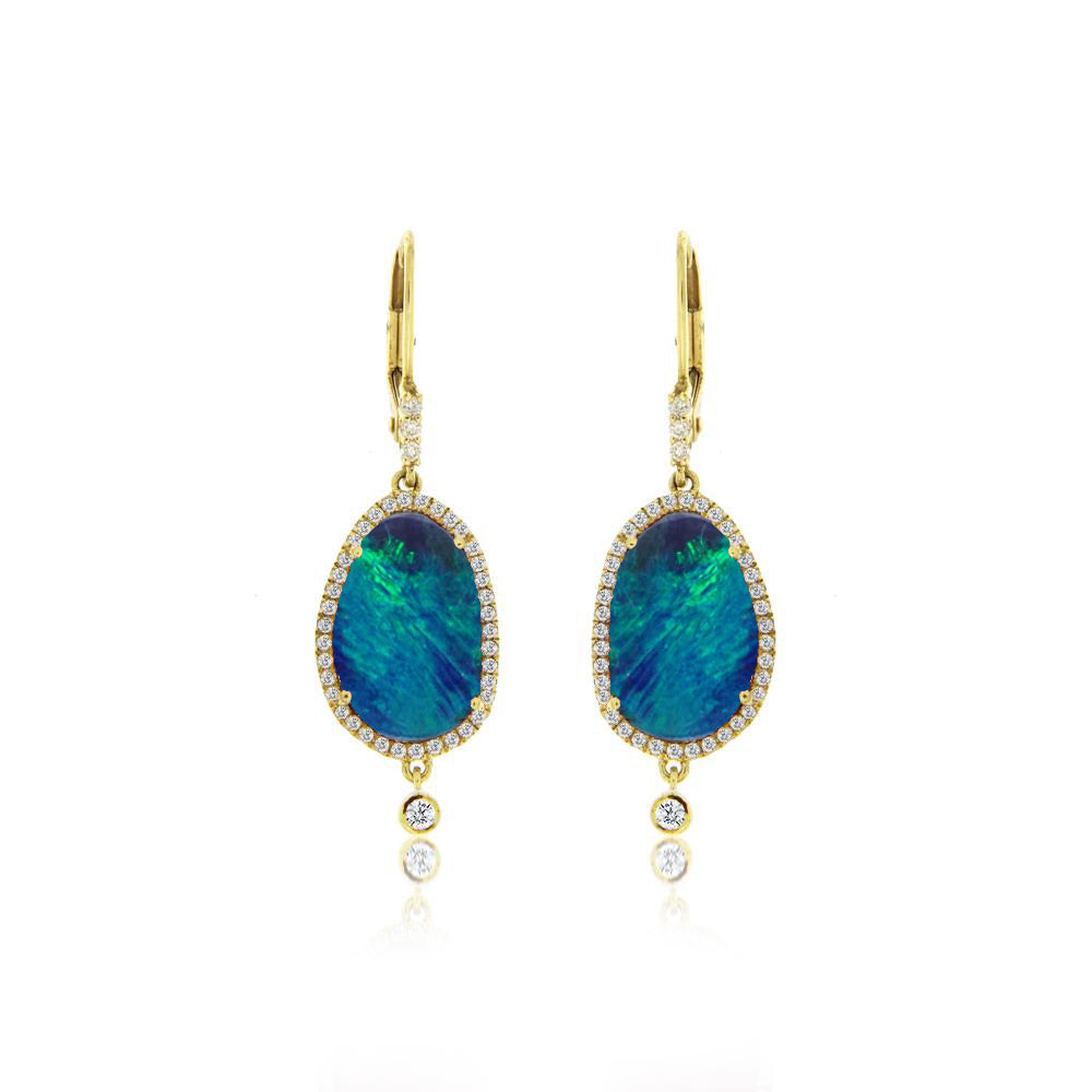 14kt Yellow Gold Opal Diamond Earings