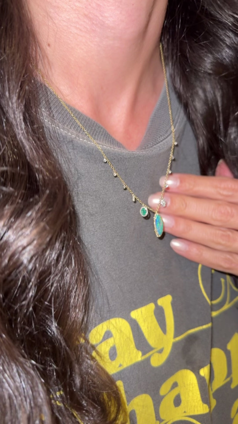 Blue Opal and Emerald Charm Necklace