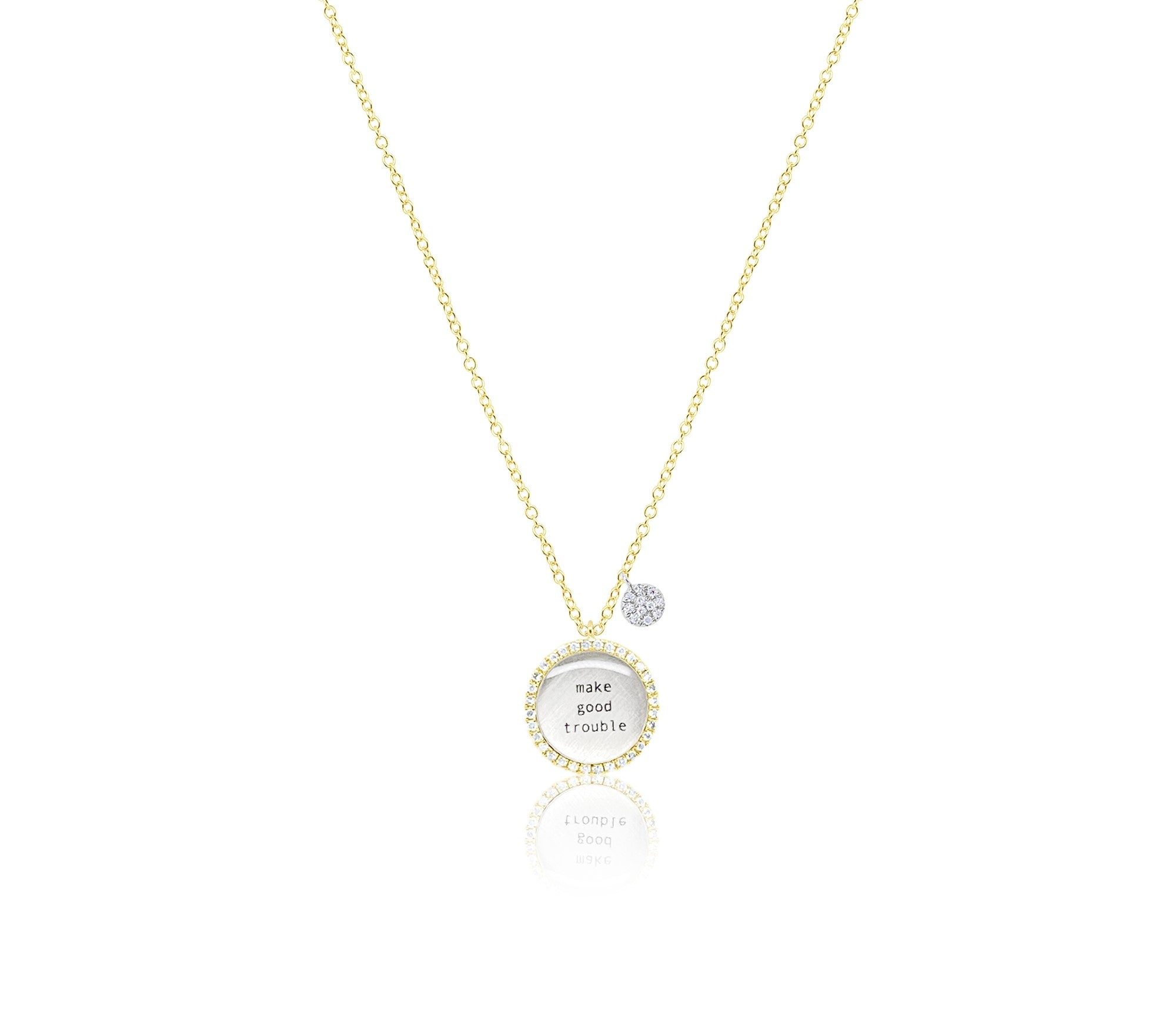 Yellow Gold and Silver Diamond Neckalce 'Make Good Trouble"