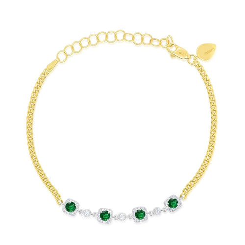 14 Kt Yellow Gold Emerald Diamond Rectangle Hoops