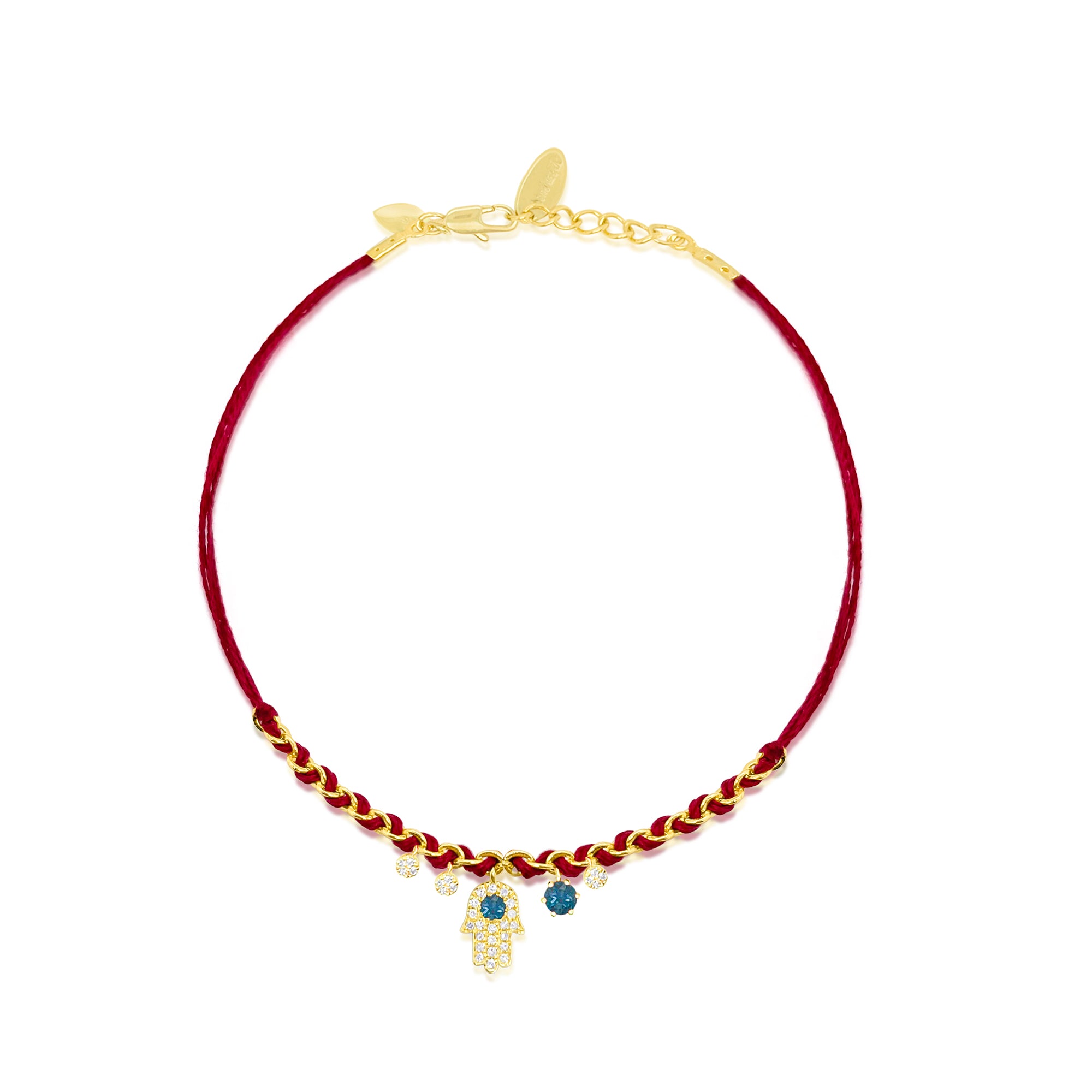 14kt Yellow Gold Diamond and Red Garnet Hamsa Chord Bracelet